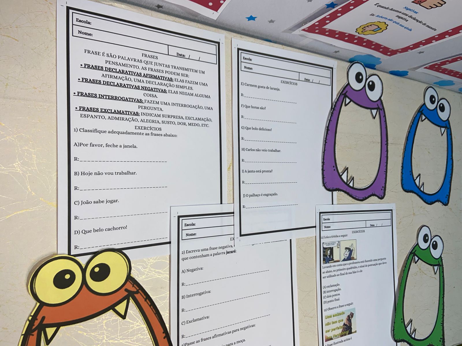 Asatividadesa seguir foram elaboradas para auxiliar no aprendizadodefrasesafirmativa,negativa,interrogativaeexclamativa. O material está pronto para imprimir, sendo um recurso prático para uso em saladeaula ou ematividadesdereforçoeestudo em casa.