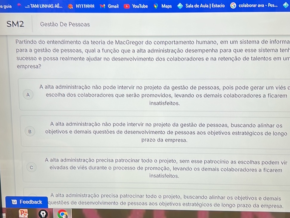 PartindodoentendimentodateoriadeMacGregor docomportamentohumano, em um sistemadeinformações para a gestãodepessoas, qual a função que a alta administração desempenha para que esse sistema tenha sucesso e possa realmente ajudar no desenvolvimentodoscolaboradores e na retençãodetalentos em uma empresa.