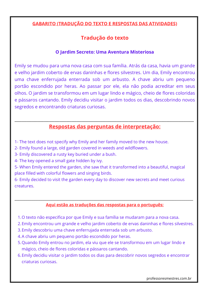 Todos ostextoseminglêsdeinterpretaçãopara o7ºanocomgabaritoestão disponíveis online, podendo ser acessados gratuitamente. Professores e alunos podem baixar e imprimir os materiais conforme necessário, facilitando o acesso ao conteúdo educativo de qualidade.